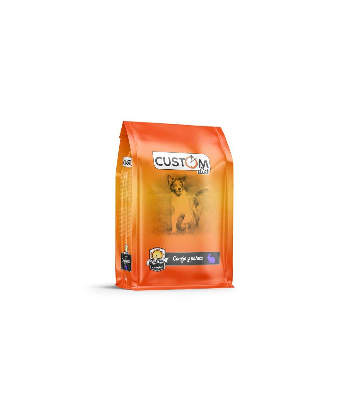 Composición: Carne fresca de conejo (45%), patata (18%), ave deshidratada (16%), guisantes, salsa de ave, boniato, levadura de cerveza, hidrolizado de higado de ave, aceite de salmón rico en Om3, manzana (6%), sustancias minerales, zanahoria (5%), extracto de yucca schidigera, glucosamina-condroitina, extractos vegetales (naranja, limón, pomelo, achicoria, romero), taurina, prebióticos, antioxidantes naturales, probióticos (E. faecium). Proteína 26%, Aceite y grasas brutas 16%, Fibra bruta 2,5%, Materia inorgánica 6,5%, Calcio 1.3%, Fósforo 1.1%, Humedad 10%
