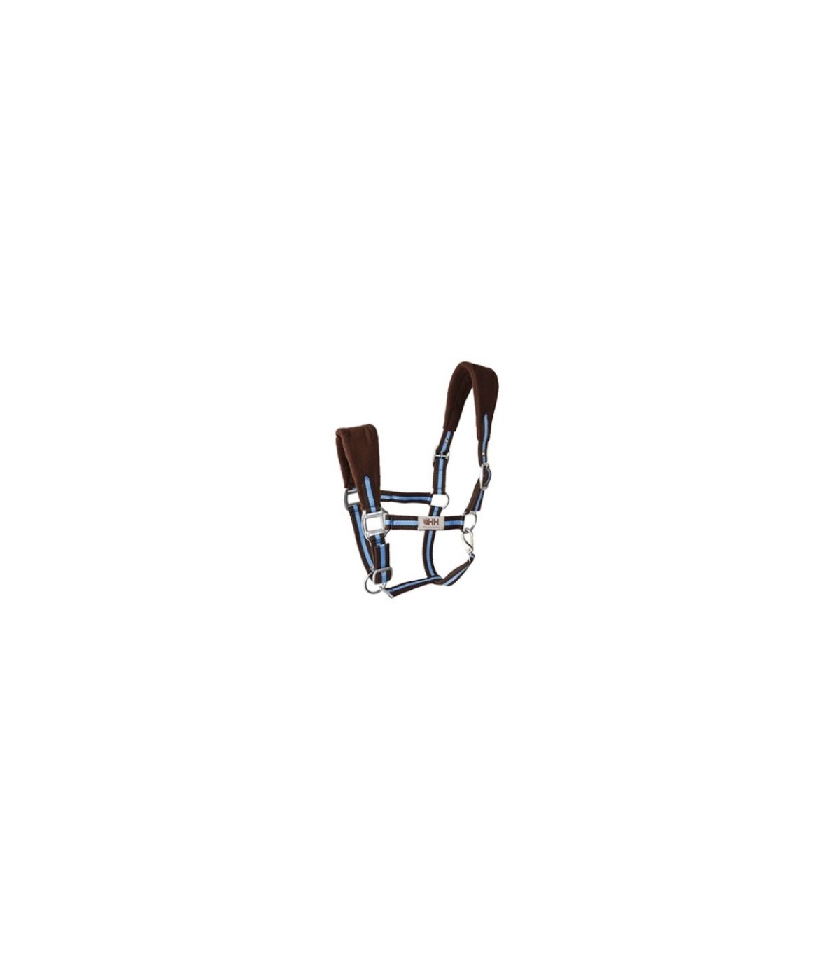 CABEZADA NYLON C/FORRO Y MOSQUETON MARRON/AZUL CLARO FULL