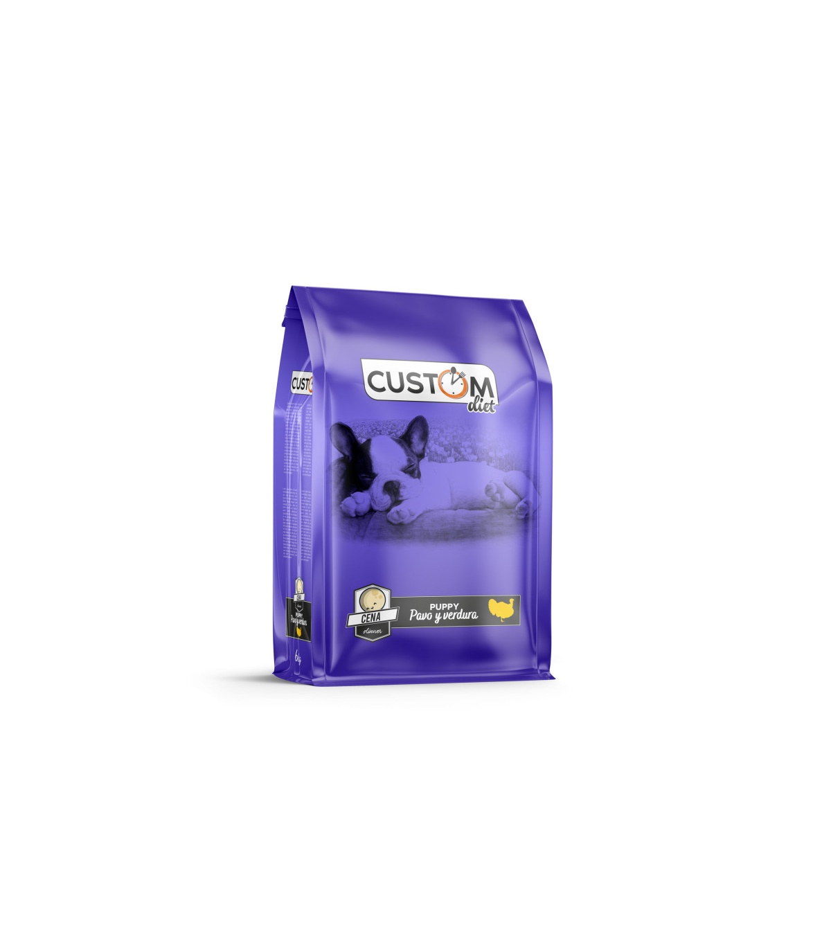 El CUSTOM CENA PUPPY PAVO VERDURA 6KG es un alimento natural para cachorros que ofrece más del 70% de proteína animal sin cereales. Su composición incluye carne fresca de pavo (55%), patata (16%), pollo deshidratado (14%), salmón (9%), y otros ingredientes saludables como zanahoria, extractos vegetales y probióticos. Este alimento garantiza una dieta balanceada y nutritiva, promoviendo el crecimiento y desarrollo óptimo de tu cachorro.