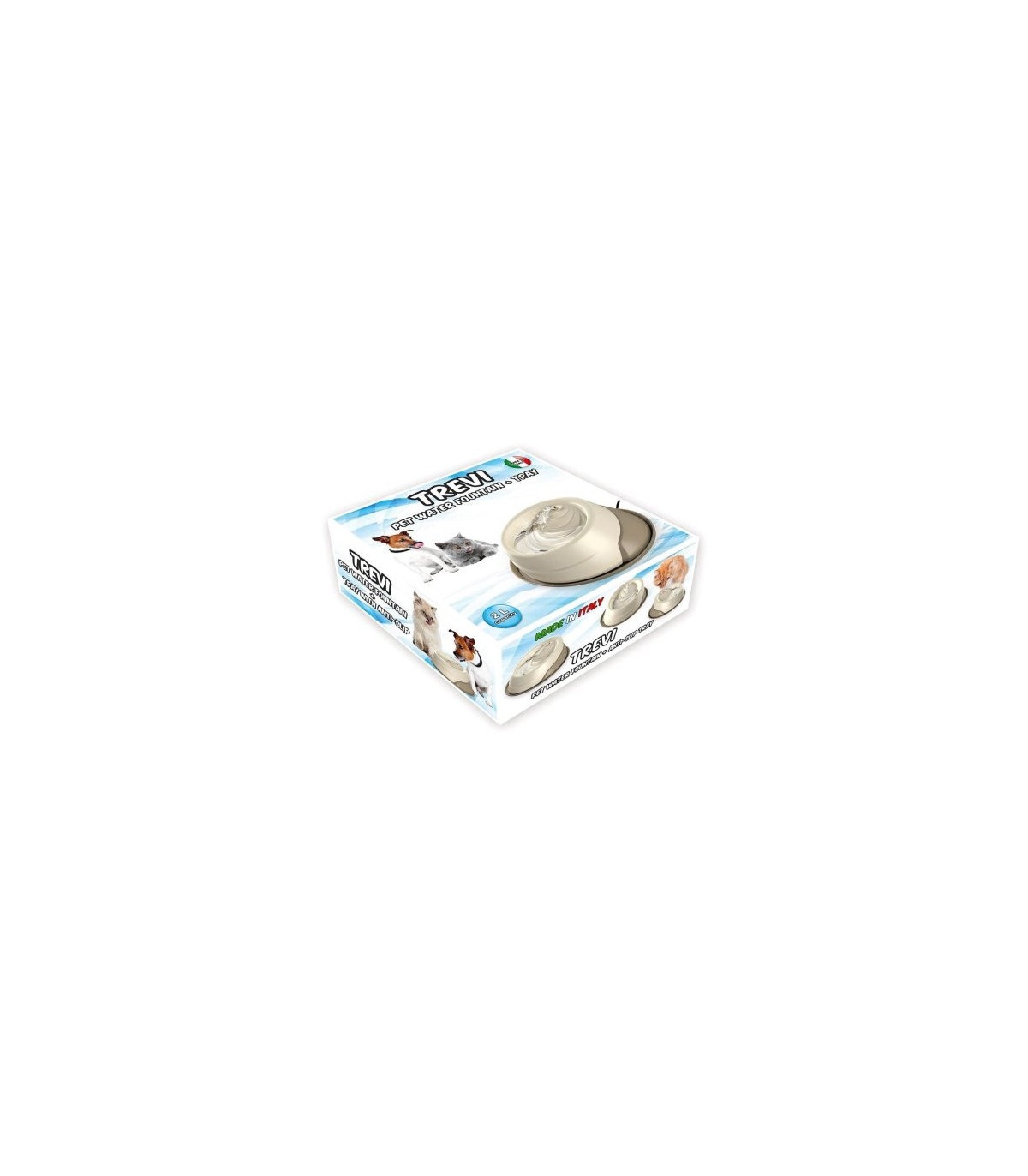 Descripción: Fuente de agua 2 L TREVI A los gatos y los perros les gusta beber agua limpia y saludable. La fuente de agua Trevi es fácil de limpiar y le permite proporcionar a sus animales agua libre de impurezas y oxigenada. Su forma ergonómica permite que el animal pueda beber directamente de la fuente o en el comedero.