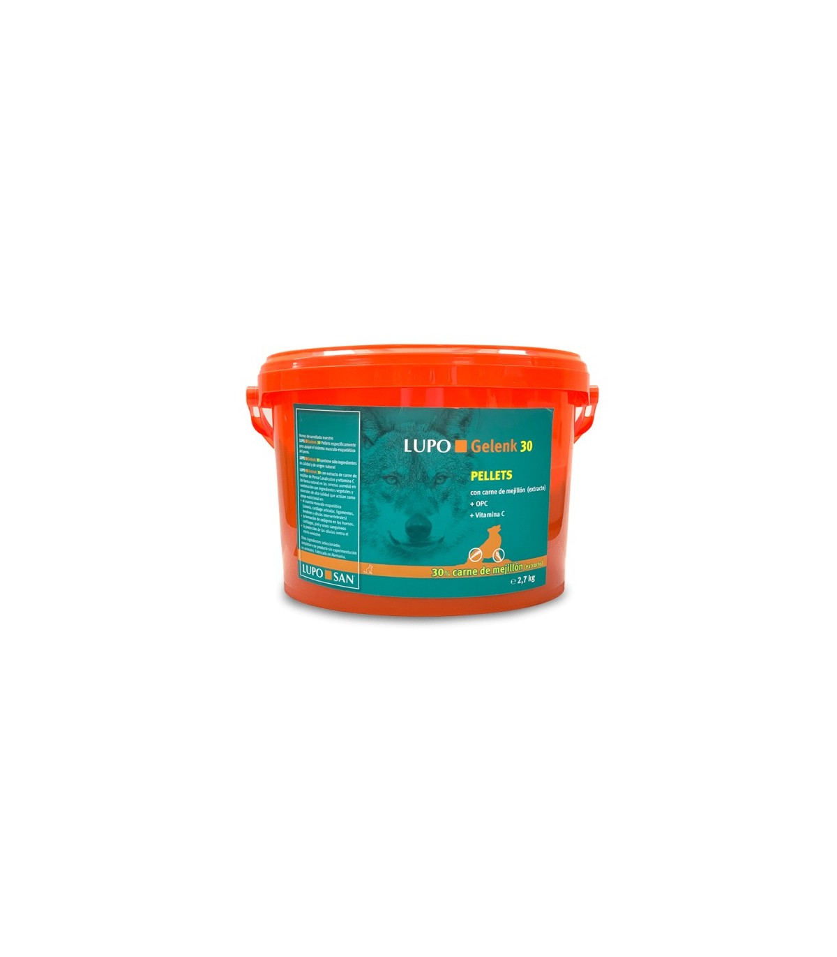 Luposan Gelenk 30 es un complemento alimenticio natural en pellets formulado para el crecimiento, mantenimiento y reparación de las articulaciones del perro. Contiene un 30% de extracto de carne de mejillón neozelandés Perna Canaliculus, fuente natural de glucosaminoglicanos (GAG), que favorecen la salud del cartílago, tendones y ligamentos. Ideal para perros en crecimiento, deportistas o con problemas articulares como artrosis o displasia.